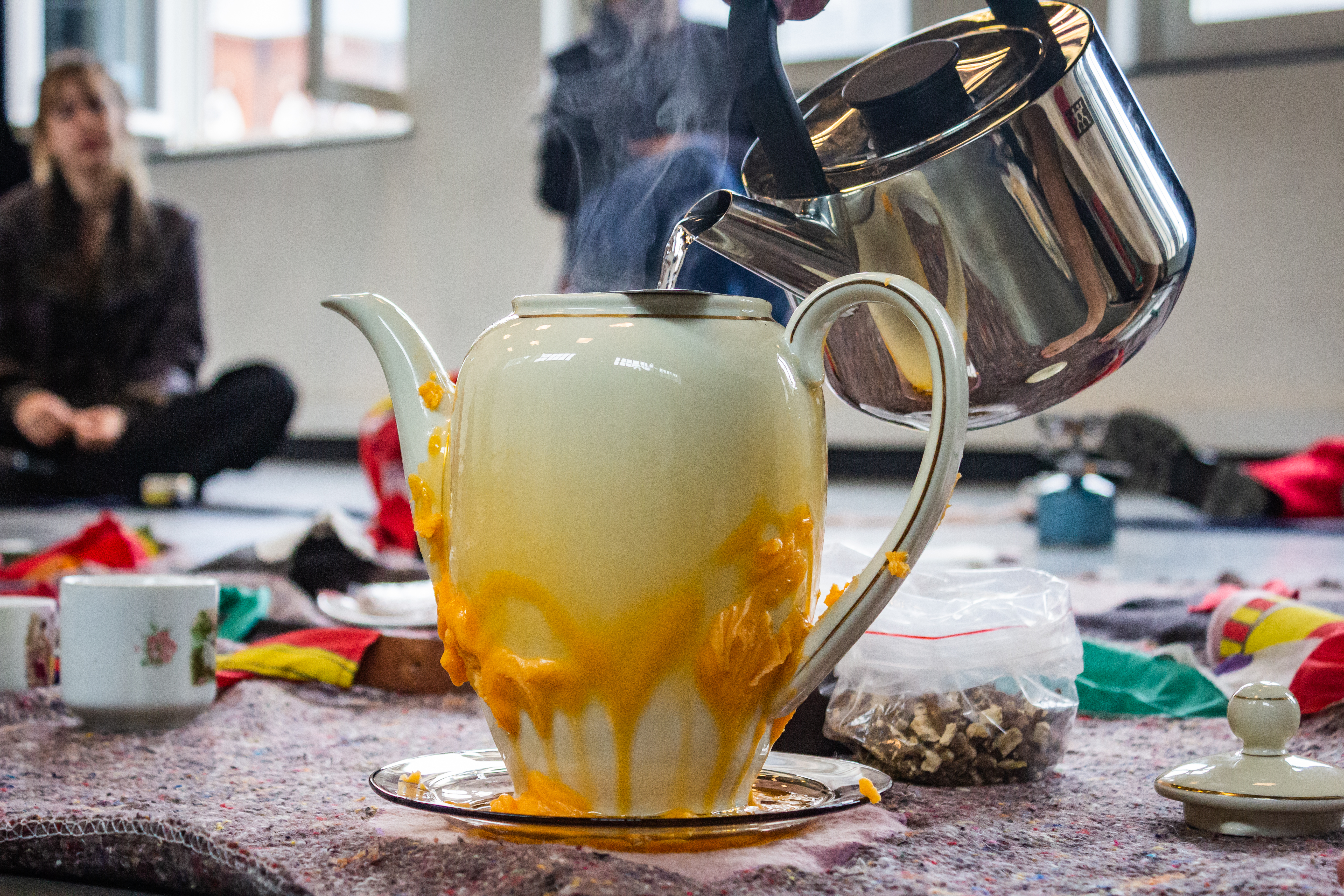 A picnic under cover is a ritual where it is not just humans who tell stories, where things are lost and can be rediscovered. Against the backdrop of a never-begun travelogue we will share something to eat and to drink.