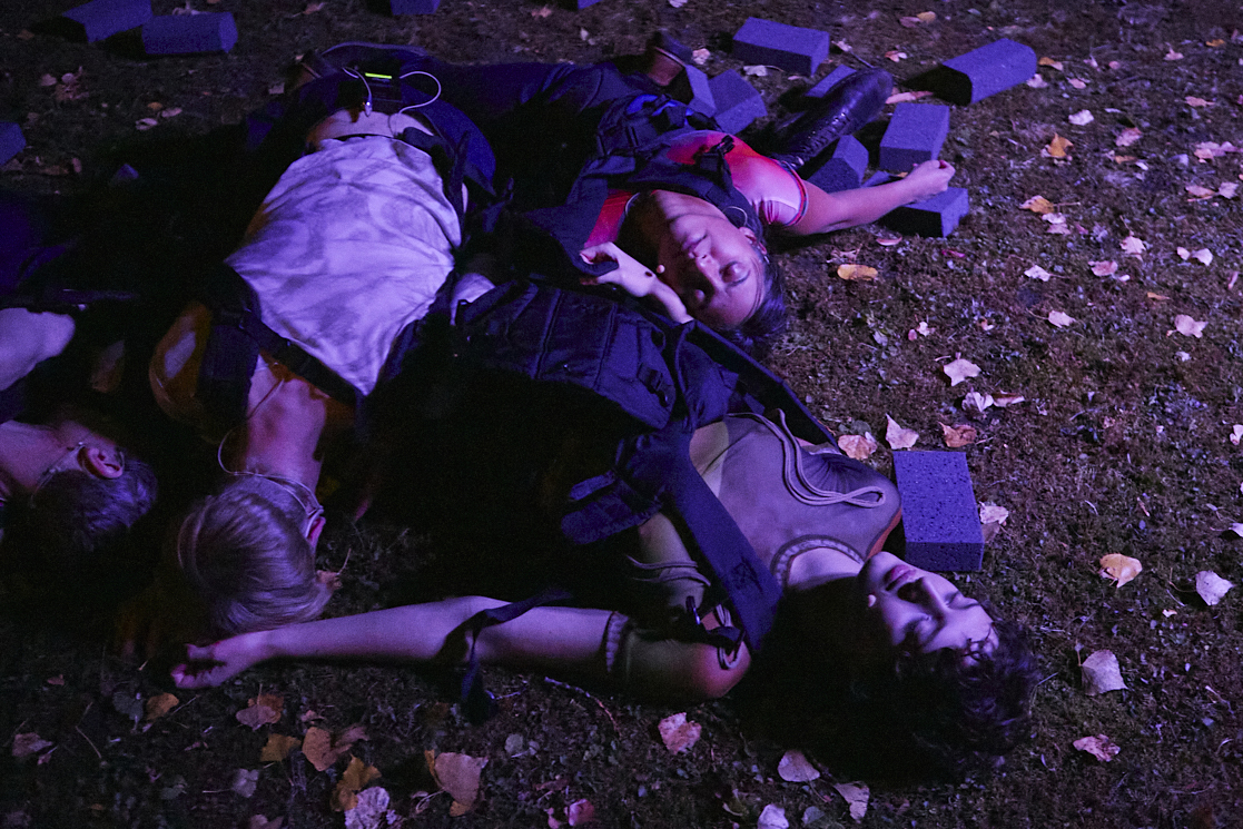 (en) In my Family is a performance held in the offices of an insurance company in Munich, inspired by the game Happy Families, also known in France as the jeu des 7 familles. Four people wear baby carriers. They are looking for something: something to fill the empty space in their carrier, something to share their home with, or someone to love them. What does it mean to choose your own family? Is family even something for everyone? This performance looks at the issue of starting a family, the desire to have children and the pressure to perform that comes with it. This piece explores other ways of understanding the concept of family.
